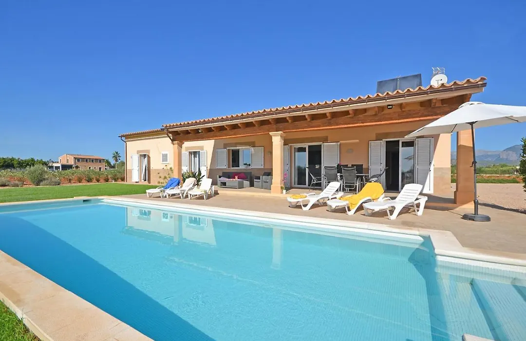 Die 4-Zimmer- Villa Sion Binissalem verfügt über eine Terrasse mit einem Swimmingpool.